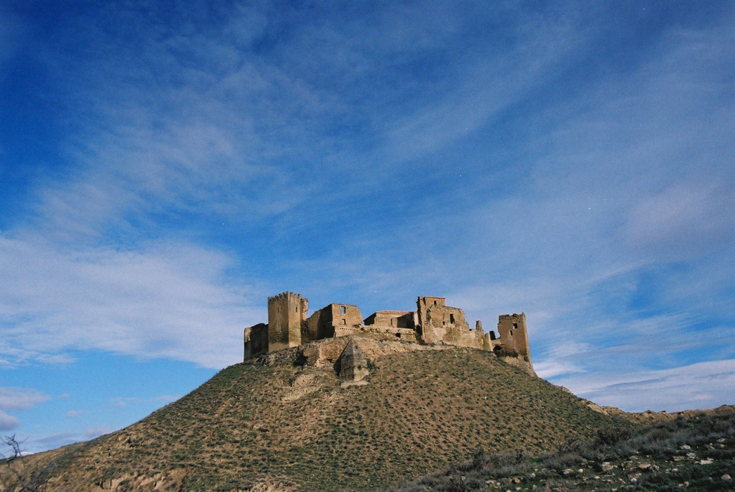 Restos de monumento megalítico con el Castillo de Acher al fondo. Hecho (Huesca). Foto del proyecto para el PGOU por A. Alagón ARQUEOPLUS.