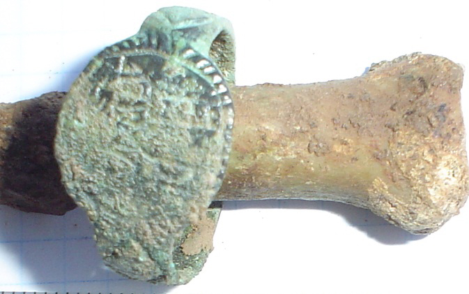 Hebilla de bronce. Nivel medieval, Sancho Abarca 9-11 (Huesca). Foto excavación arqueológica A. Alagón ARQUEOPLUS.